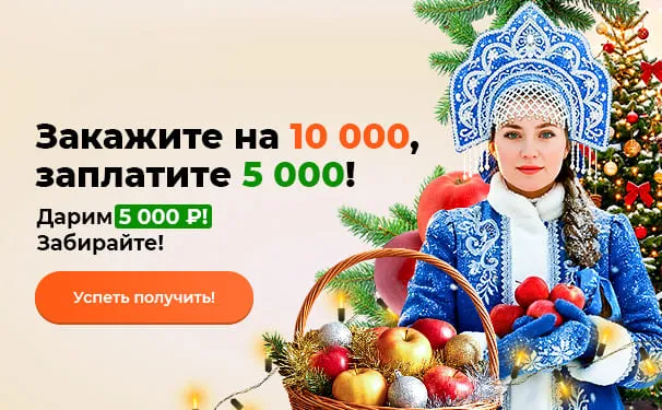 Закажите на 10 000, заплатите 5000! Дарим 5 000 ₽! Забирайте!